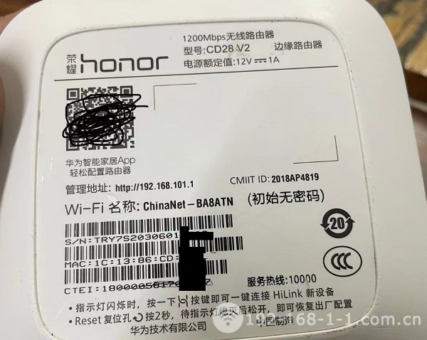 | 华为 | 联通定制版 | 192.168.101.1 | 无 | 见路由器底部贴纸 |
