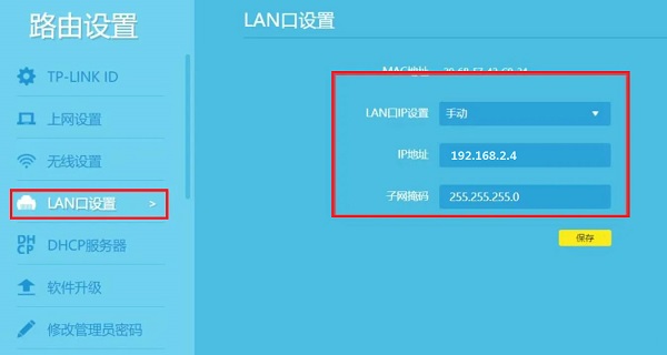 4;找到路由器网络设置中的LAN口设置。