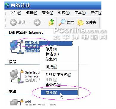 『注』不必理会其他的诸如“1394连接”,“无线网络连接”等其他连接,只针对“本地连接”完成此操作。
