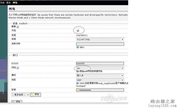 从“网络”-》“wifi”-》“radio0”进去设置: