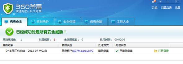 图:360杀毒查杀“表格幽灵”宏病毒