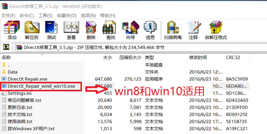 3、接着我们选择合适的修复工具,在弹出的页面中找到DirectX_Repair_win8_win10.exe并双击打开。