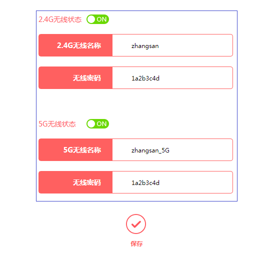 在无线桥接过程中我们只配置了一个频段的无线信号名称和密码,还需要配置另外一个频段。比如使用5G频段桥接,就需要单独设置2.4G的无线信号,反之一样。点击常用设置>无线设置修改相关设置,如果主路由器也是双频路由器,请将信号名称和密码设置与主路由器一致,以实现漫游。