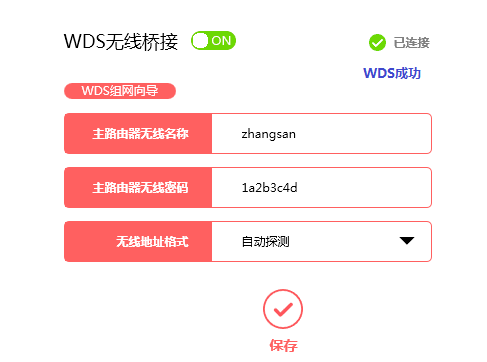 观察右上角WDS状态,已连接表示WDS桥接成功。如下图: