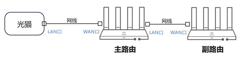 连接光猫或入户网线的为主路由,下接主路由的路由器则为副路由。