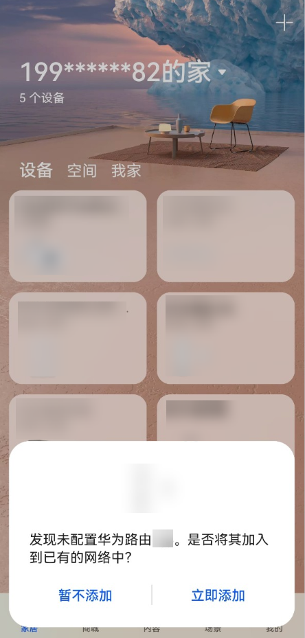 3. 打开智慧生活 App,在首页家居等待一段时间后,底部弹窗提示检测到副路由,点击立即添加 > 完成安装。若副路由的指示灯变为绿色/白色/蓝色常亮,则表示智联组网成功。