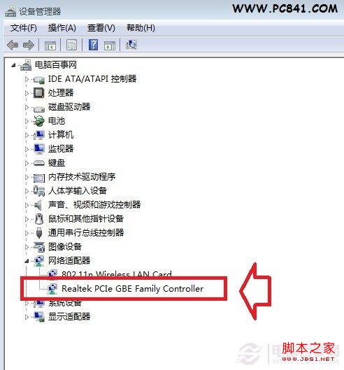 2.右键单击 计算机属性设备管理器,查看设备列表中的“网络适配器”至少有一项。如果没有,就说明系统没有检测到网卡。那就要检查网卡是没插好,还是出现故障了。如果网卡设备名称上出现感叹号,则说明驱动不兼容,则需重新安装驱动。