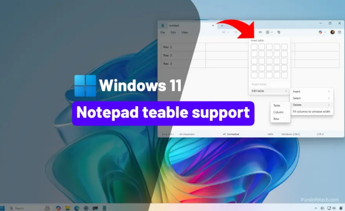 ? 记事本表格支持已加入 Windows 11 版本 11.2510.6.0 的记事本中,新增了插入表格工具栏以及与 Markdown 兼容的表格。