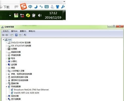 如果右下角网络图标显示如下,那么再检查一下无线网卡情况。在我的电脑上单击右键——设备管理器——网络适配器,看网卡驱动是否良好。
